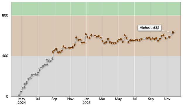 昨年12月末以来、11か月ぶりのアルゴリズム部門の最高Rating更新。一見すると1年間成長していないように見えるが、3月以降の9ヶ月間を見ると徐々に向上していると捉えたい。